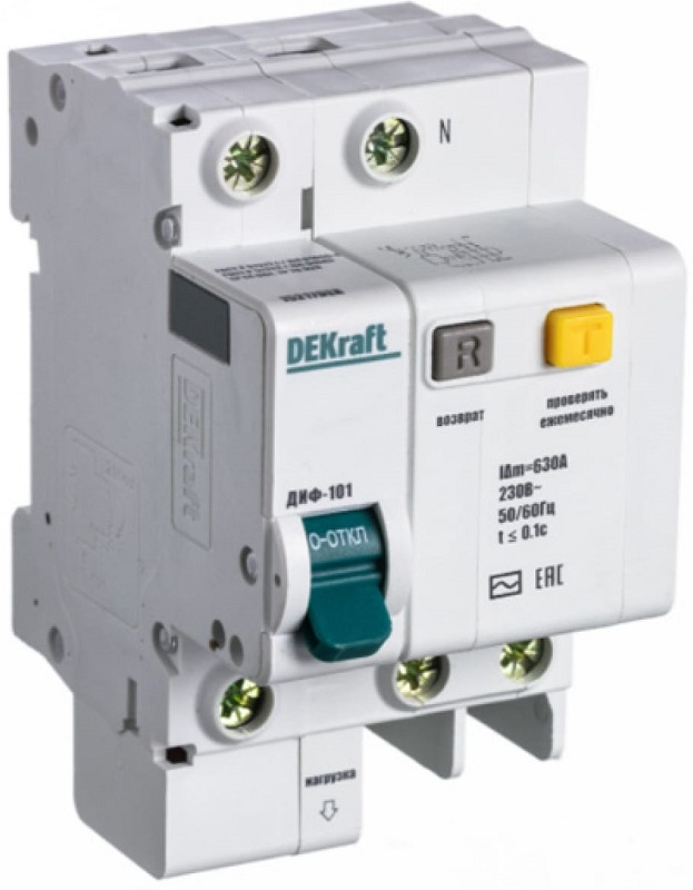 Автомат дифференциального тока АВДТ DEKraft ДИФ-101 2п 40А 100мА 4.5кА C тип AC