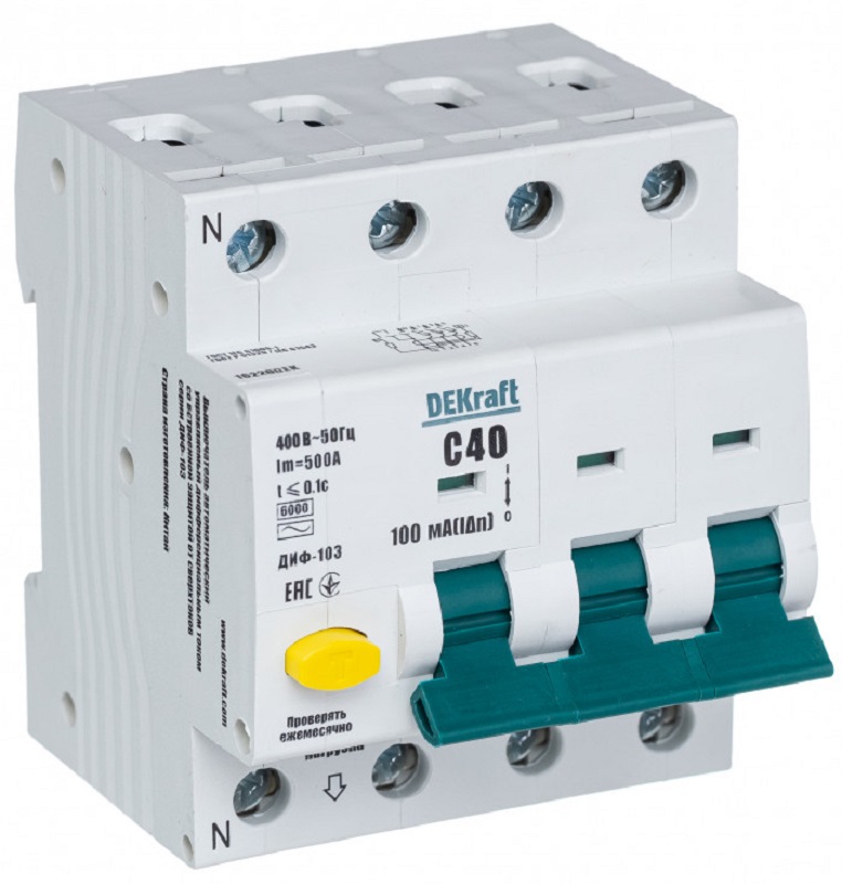 Автомат дифференциального тока АВДТ DEKraft ДИФ-103 4п (3п+N) 40А 100мА 6кА C тип A