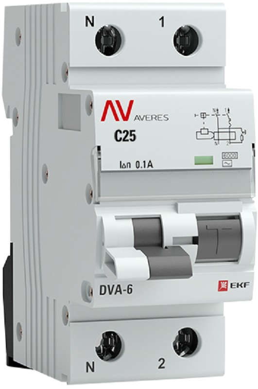 Автомат дифференциального тока АВДТ EKF Averes DVA-6 2п 25А 100мА 6кА C тип A