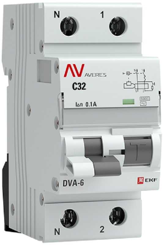Автомат дифференциального тока АВДТ EKF Averes DVA-6 2п 32А 100мА 6кА C тип A