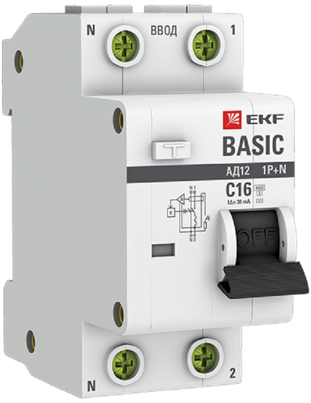 Выключатели автоматические дифференциального тока (дифавтоматы) АД-12 EKF серии Basic представляют собой аппараты, сочетающие функции автоматического выключателя с устройством защитного отключения. При обнаружении автоматическим выключателем в защищаемом участке сети тока утечки (повреждения) на землю или сверхтока (тока перегрузки или короткого замыкания) происходит срабатывание устройства, приводящее к отключению защищаемой сети.