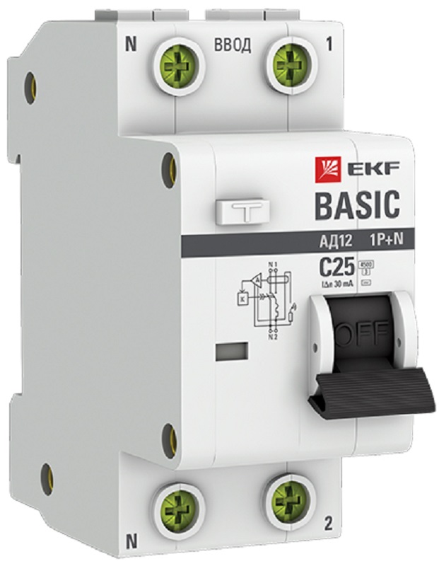Выключатели автоматические дифференциального тока (дифавтоматы) АД-12 EKF серии Basic представляют собой аппараты, сочетающие функции автоматического выключателя с устройством защитного отключения. При обнаружении автоматическим выключателем в защищаемом участке сети тока утечки (повреждения) на землю или сверхтока (тока перегрузки или короткого замыкания) происходит срабатывание устройства, приводящее к отключению защищаемой сети.