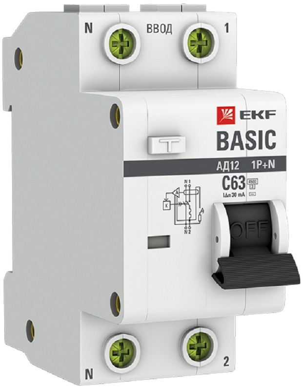 Выключатели автоматические дифференциального тока (дифавтоматы) АД-12 EKF серии Basic представляют собой аппараты, сочетающие функции автоматического выключателя с устройством защитного отключения. При обнаружении автоматическим выключателем в защищаемом участке сети тока утечки (повреждения) на землю или сверхтока (тока перегрузки или короткого замыкания) происходит срабатывание устройства, приводящее к отключению защищаемой сети.