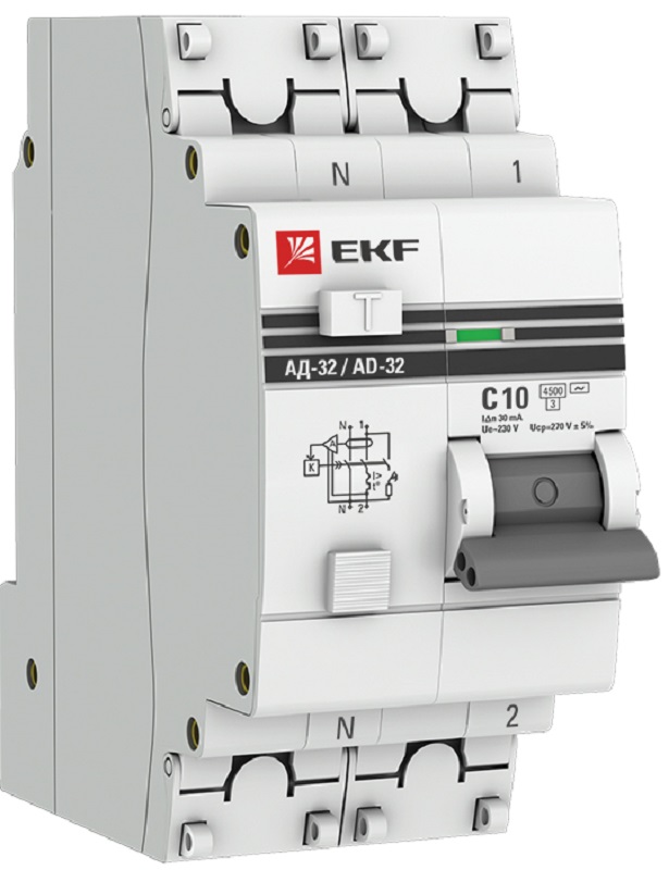Автомат дифференциального тока АВДТ EKF PROxima АД-32 2п 10А 30мА 4,5кА C тип AC