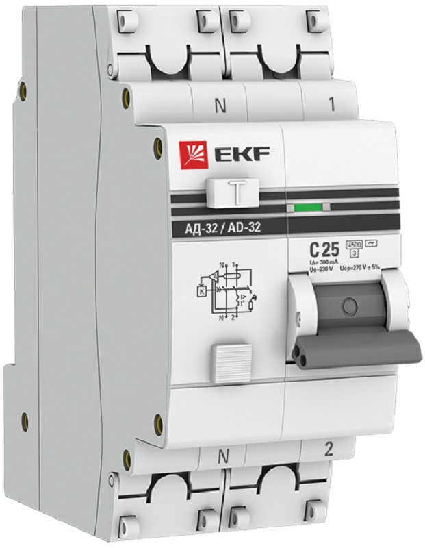 Автомат дифференциального тока АВДТ EKF PROxima АД-32 2п 25А 300мА 4,5кА C тип AC