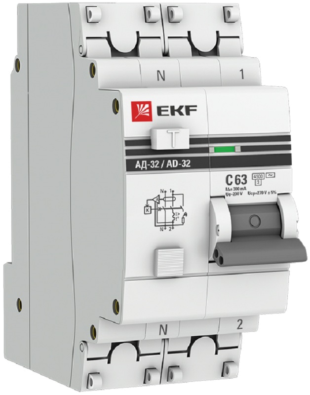 Автомат дифференциального тока АВДТ EKF PROxima АД-32 2п 63А 300мА 4,5кА C тип AC