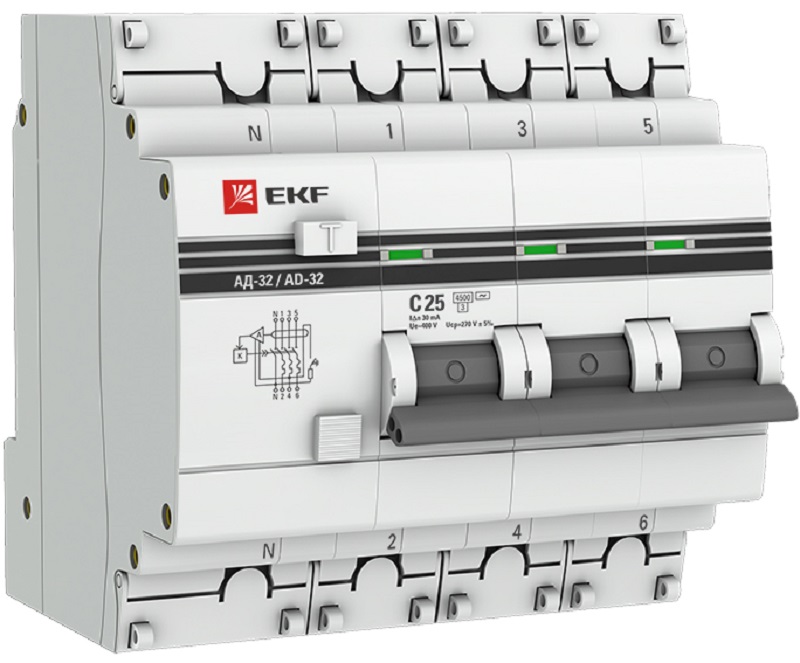 Дифференциальный автоматический выключатель АД-32 EKF PROxima представляет собой аппарат, сочетающий функции автоматического выключателя с устройством защитного отключения. При обнаружении автоматическим выключателем в защищаемом участке сети тока утечки (повреждения) на землю или сверхтока (тока перегрузки или короткого замыкания) происходит срабатывание устройства, приводящее к отключению защищаемой сети.