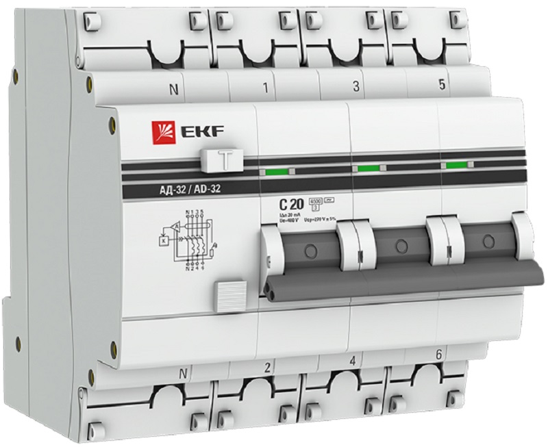 Автомат дифференциального тока АВДТ EKF PROxima АД-32 4п 20А 30мА 4,5кА C тип AC
