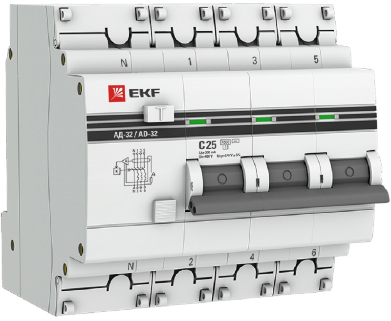 Автомат дифференциального тока АВДТ EKF PROxima АД-32 4п 25А 300мА 4,5кА C тип AC