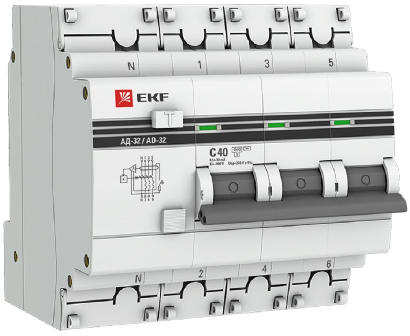 Автомат дифференциального тока АВДТ EKF PROxima АД-32 4п 40А 30мА 4,5кА C тип AC