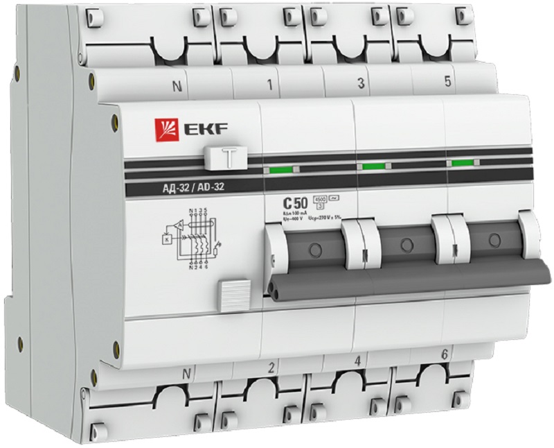 Автомат дифференциального тока АВДТ EKF PROxima АД-32 4п 50А 100мА 4,5кА C тип AC