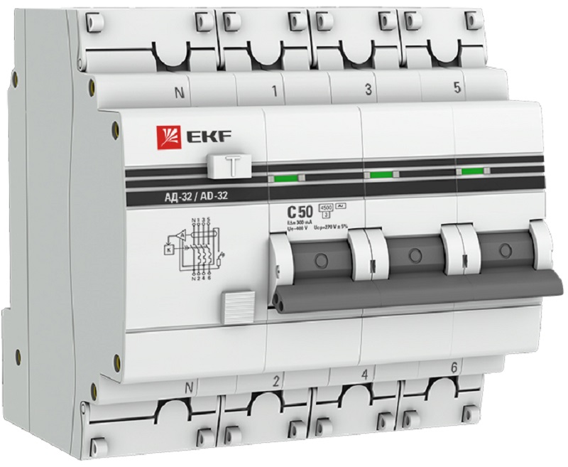 Автомат дифференциального тока АВДТ EKF PROxima АД-32 4п 50А 300мА 4,5кА C тип AC
