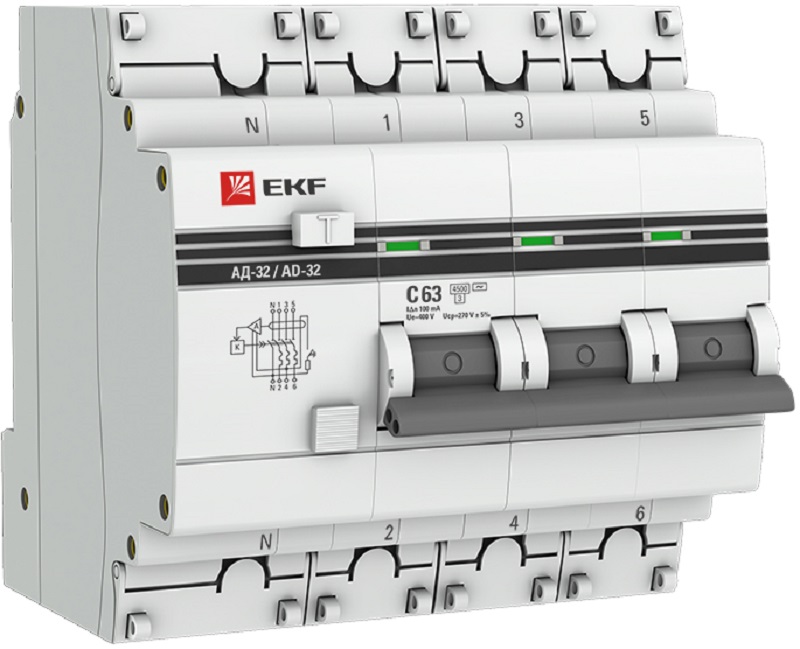 Дифференциальный автоматический выключатель АД-32 EKF PROxima представляет собой аппарат, сочетающий функции автоматического выключателя с устройством защитного отключения. При обнаружении автоматическим выключателем в защищаемом участке сети тока утечки (повреждения) на землю или сверхтока (тока перегрузки или короткого замыкания) происходит срабатывание устройства, приводящее к отключению защищаемой сети.