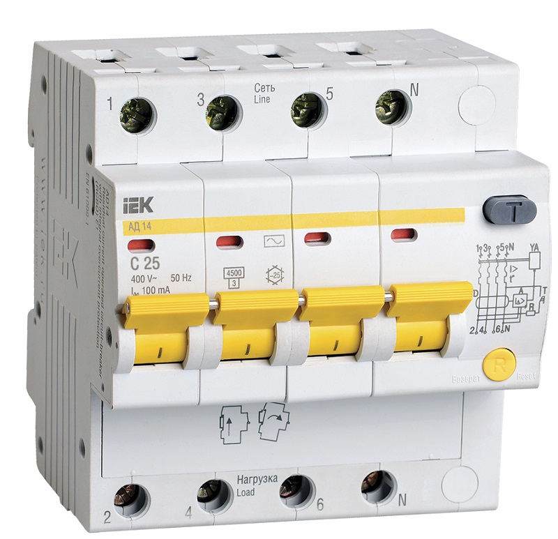 Автомат дифференциального тока АВДТ IEK KARAT АД14 4п 25А 100мА 4,5кА C тип AC