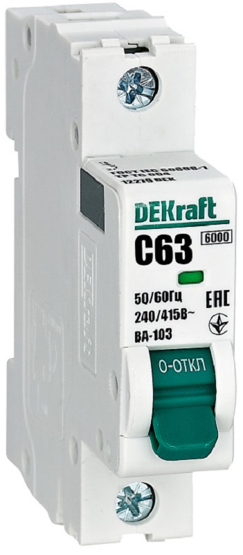Выключатель автоматический DEKraft ВА-103 1п 63А C 6кА