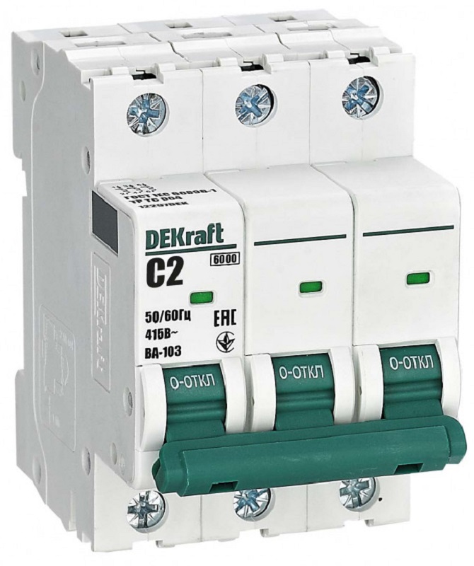 Выключатель автоматический DEKraft ВА-103 3п 2А C 6кА
