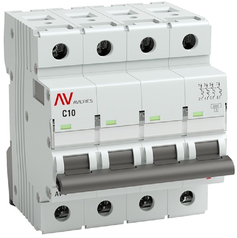 Выключатель автоматический EKF Averes AV-6 4п 10А C 6кА картинка