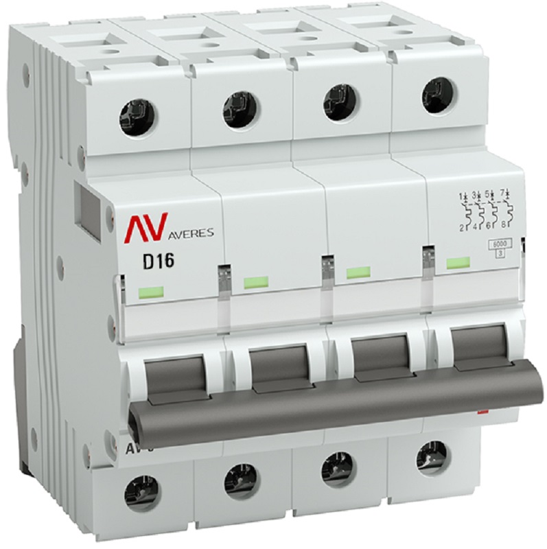 Выключатель автоматический EKF Averes AV-6 4п 16А D 6кА картинка