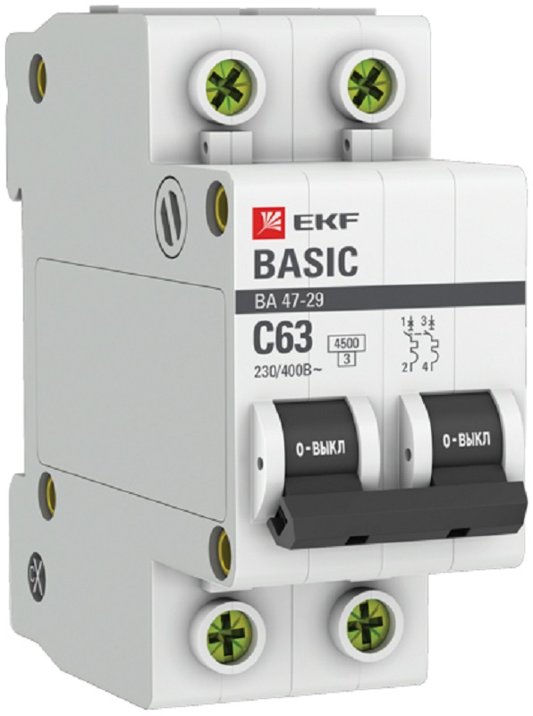 Выключатель автоматический EKF Basic ВА47-29 2п 63А C 4.5кА