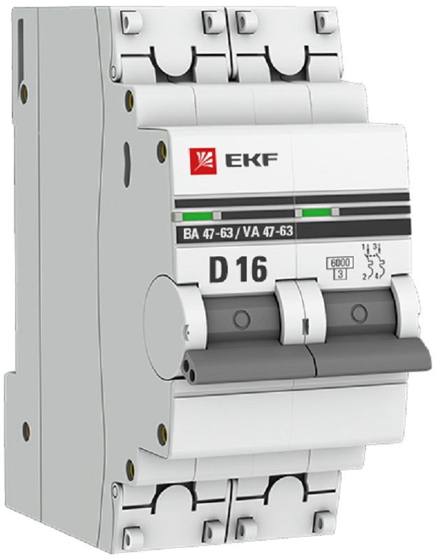 Выключатель автоматический EKF PROxima ВА47-63 2п 16А D 6кА