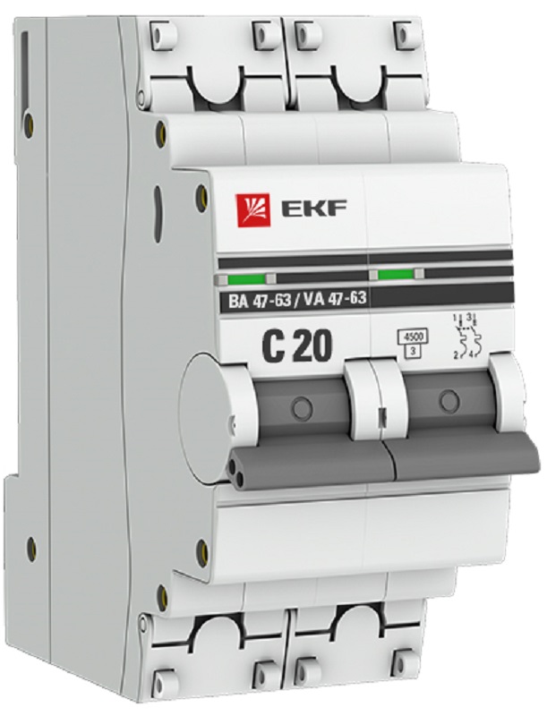 Выключатель автоматический EKF PROxima ВА47-63 2п 20А C 4.5кА