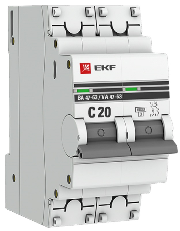 Выключатель автоматический EKF PROxima ВА47-63 2п 20А C 6кА