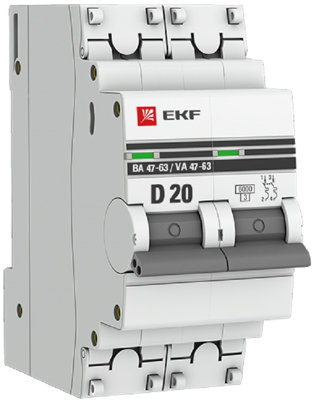 Выключатель автоматический EKF PROxima ВА47-63 2п 20А D 6кА