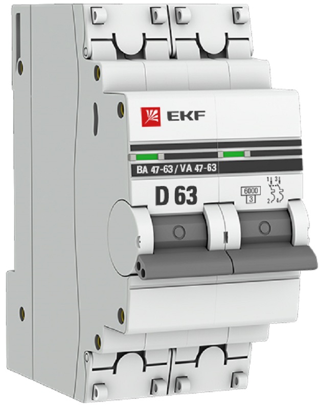 Выключатель автоматический EKF PROxima ВА47-63 2п 63А D 6кА картинка
