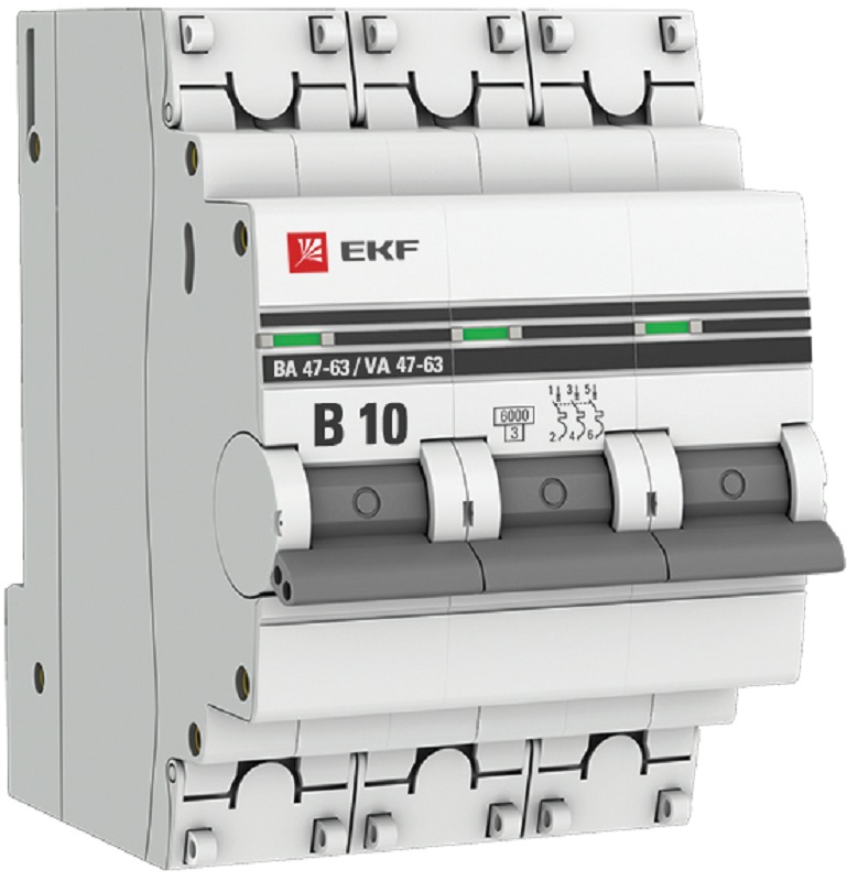 Выключатель автоматический EKF PROxima ВА47-63 3п 10А B 6кА картинка