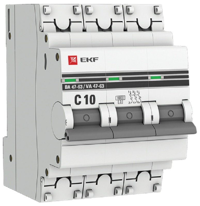 Выключатель автоматический EKF PROxima ВА47-63 3п 10А C 6кА картинка