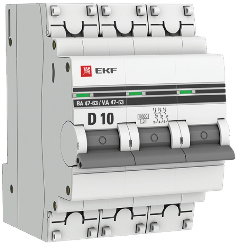 Выключатель автоматический EKF PROxima ВА47-63 3п 10А D 6кА