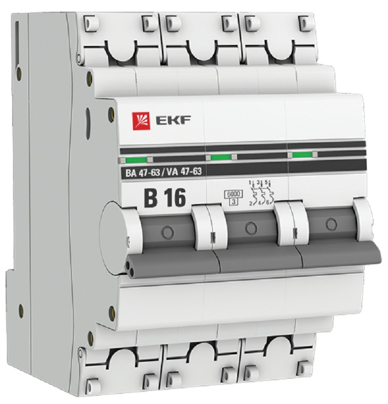 Выключатель автоматический EKF PROxima ВА47-63 3п 16А B 6кА