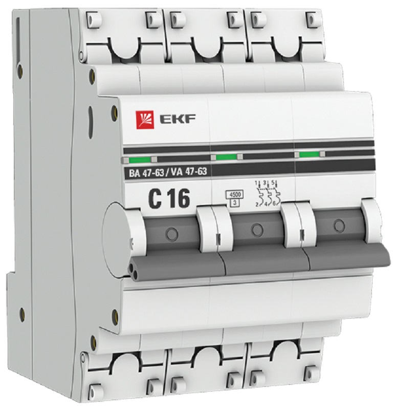 Выключатель автоматический EKF PROxima ВА47-63 3п 16А C 4.5кА