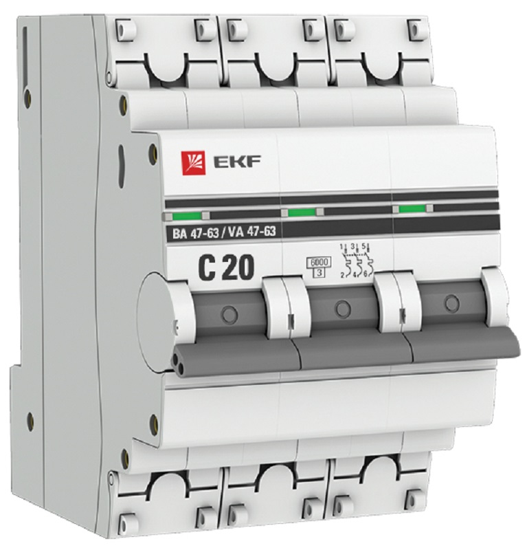Выключатель автоматический EKF PROxima ВА47-63 3п 20А C 6кА картинка