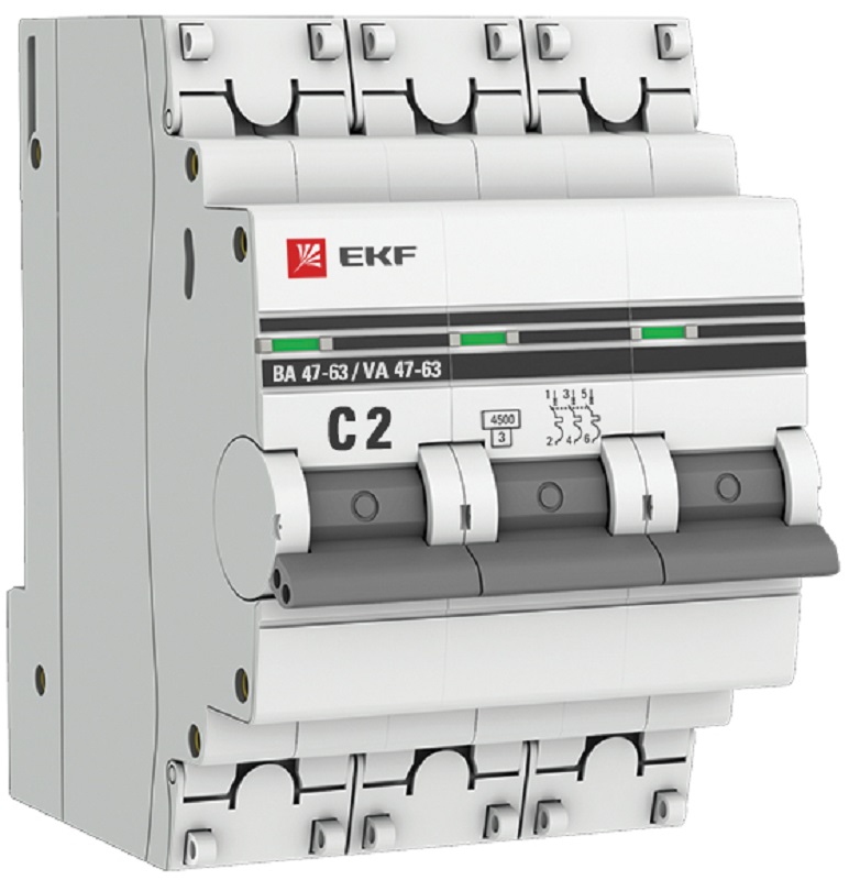 Выключатель автоматический EKF PROxima ВА47-63 3п 2А C 4.5кА