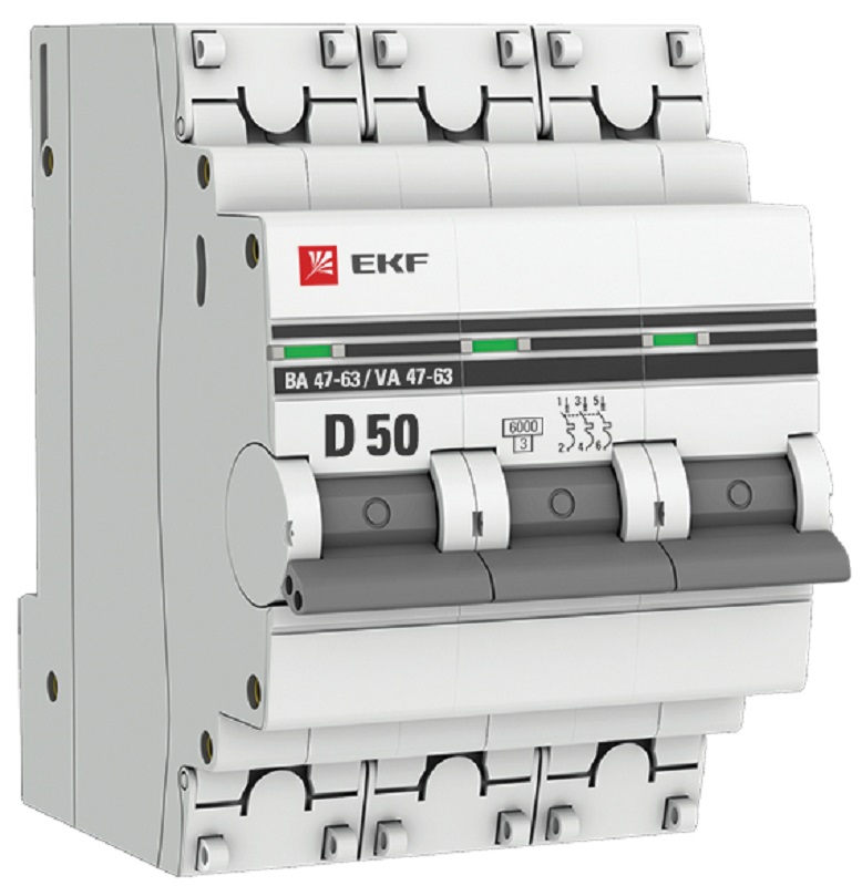Выключатель автоматический EKF PROxima ВА47-63 3п 50А D 6кА