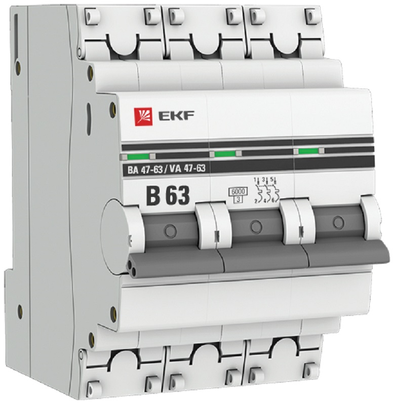 Выключатель автоматический EKF PROxima ВА47-63 3п 63А B 6кА картинка