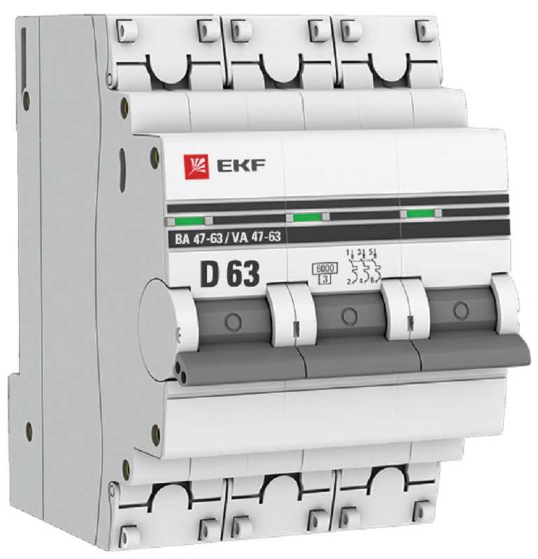 Выключатель автоматический EKF PROxima ВА47-63 3п 63А D 6кА картинка