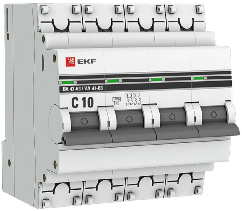 Выключатель автоматический EKF PROxima ВА47-63 4п 10А C 4.5кА
