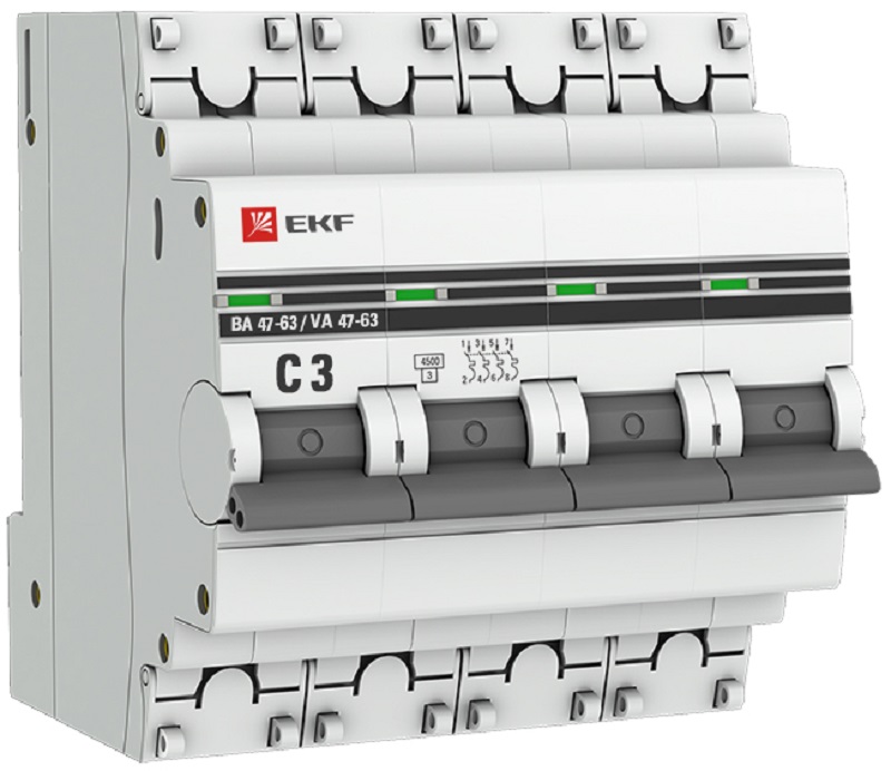 Выключатель автоматический EKF PROxima ВА47-63 4п 3А C 4.5кА