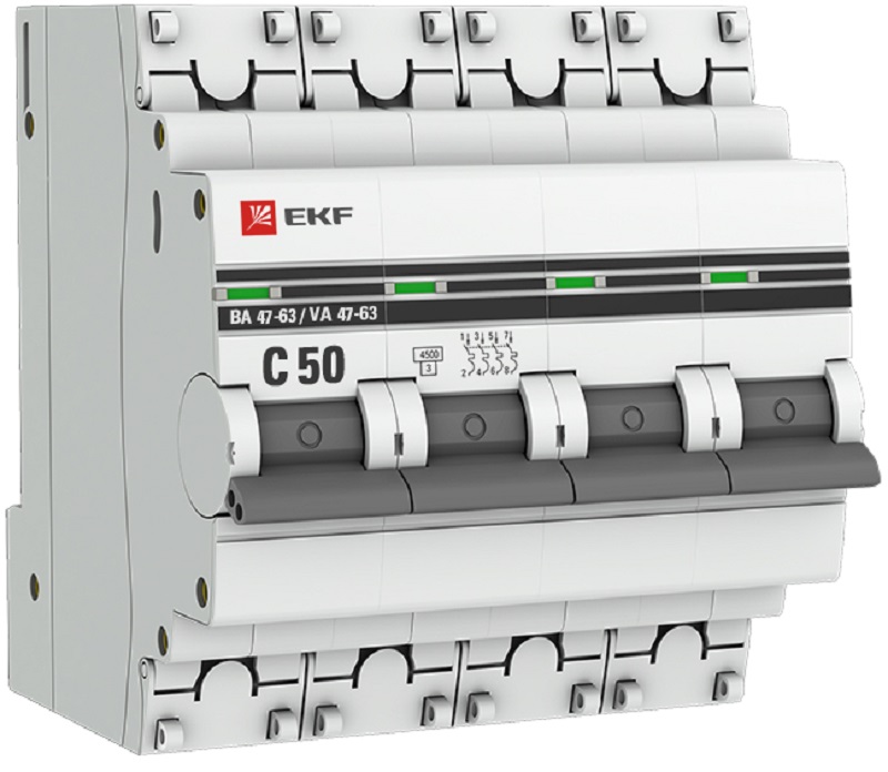 Выключатель автоматический EKF PROxima ВА47-63 4п 50А C 4.5кА