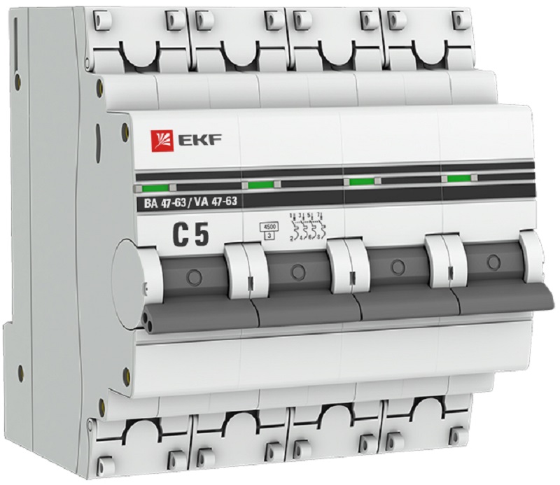 Выключатель автоматический EKF PROxima ВА47-63 4п 5А C 4.5кА