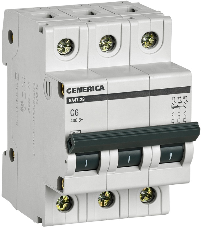 Выключатель автоматический IEK GENERICA ВА47-29 3п 6А C 4,5кА