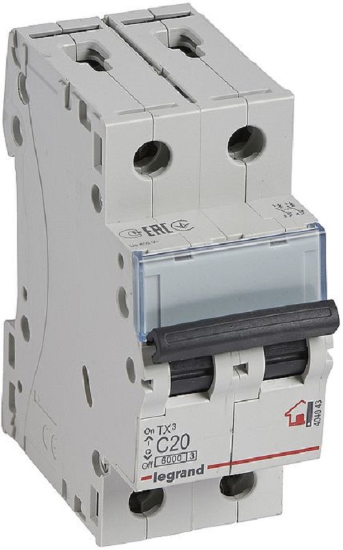 Выключатель автоматический Legrand TX3 6000 2п 20А C 6кА