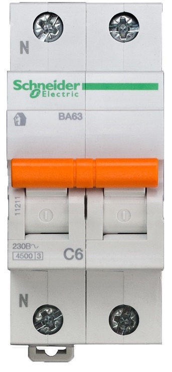 Выключатель автоматический Schneider Electric Домовой 2п C 6А ВА63 4.5кА картинка