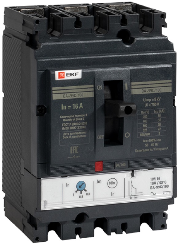 Выключатель автоматический в литом корпусе EKF PROxima Compact100 ВА-99C 3п 12,5А 36кА картинка