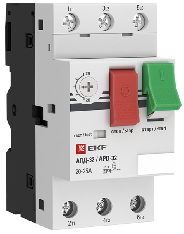 Автоматические выключатели серии пуска двигателя АПД-32 EKF PROxima с термомагнитным расцепителем специально для коммутаций цепей электрического тока напряжения до 690 В частоте 50/60 Гц, а также для управления и защиты трехфазных асинхронных двигателей от перегрузки, обрыва фазы, короткого замыкания.