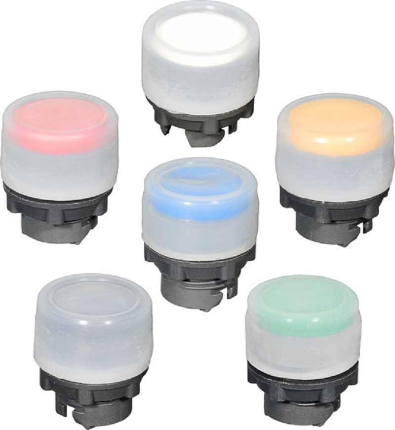 Корпус кнопки с влагозащитным колпачком LAY4-EPx является составной частью модульной серии LAY4. Устанавливается в отверстия диаметром 22.5мм, при нажатии срабатывает левый, правый и средний ряд контактных блоков установленных на монтажной колодке. Степень защиты IP54.
