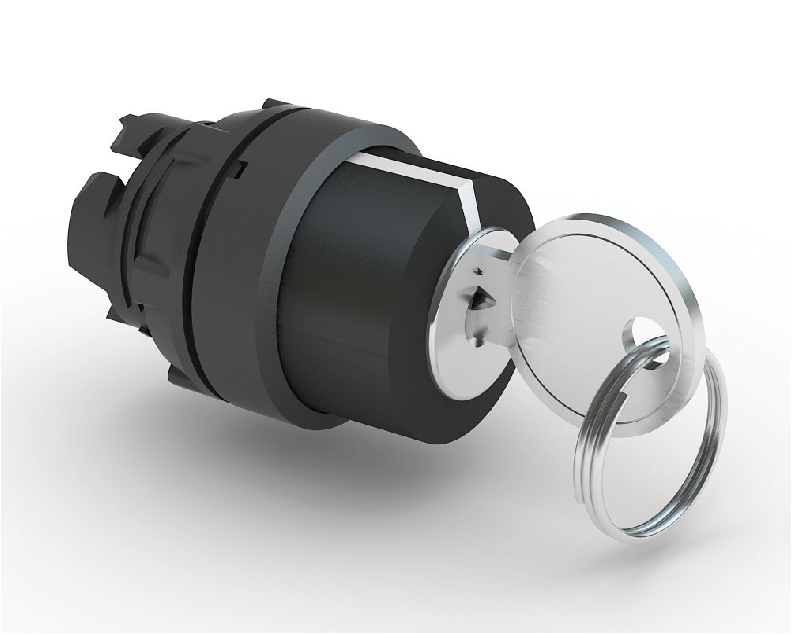 Корпус переключателя под подсветку LAY4-EKxxx является составной частью модульной серии LAY4. Устанавливается в отверстия диаметром 22мм. Двухпозиционные переключатели имеют два положения - левое и правое с отклонением от вертикальной оси 45°. В правом положении срабатывают левый и правый ряд контактных блоков, установленных на монтажной колодке. В левом положении оба ряда блоков выключены. Трехпозиционные переключатели имеют три положения - левое и правое с отклонением от вертикальной оси 45° и среднее на вертикальной оси. В левом положении коммутируется левый ряд контактных блоков установленных на монтажной колодке, в правом - правый ряд. В среднюю часть монтажной колодки устанавливается ламповый блок с вынесенным светодиодом.
