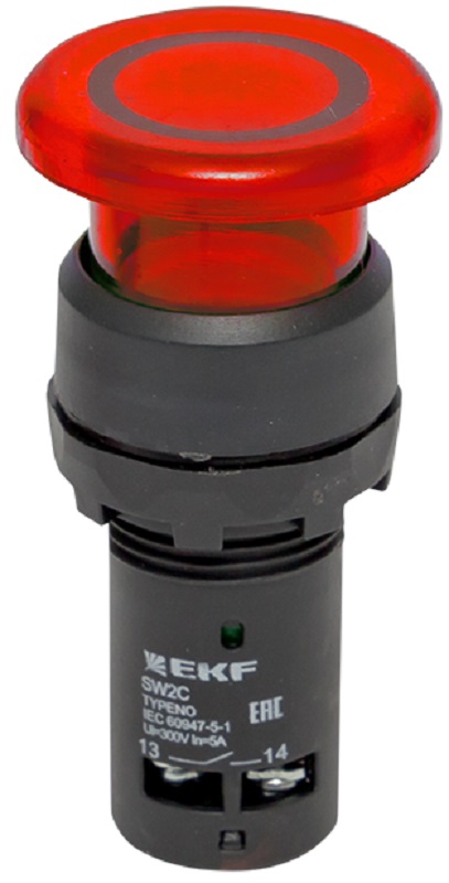 Кнопка-грибок без фиксации с подсветкой EKF PROxima SW2C-MD 1НЗ 22мм 24В IP54 красный картинка